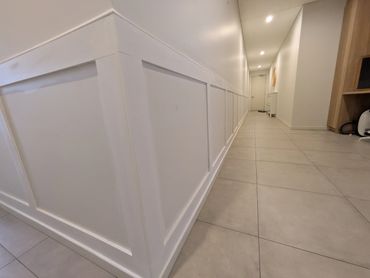Custom wainscoting and wall panelling installation, specialising in Hamptons-style panels and feature walls.